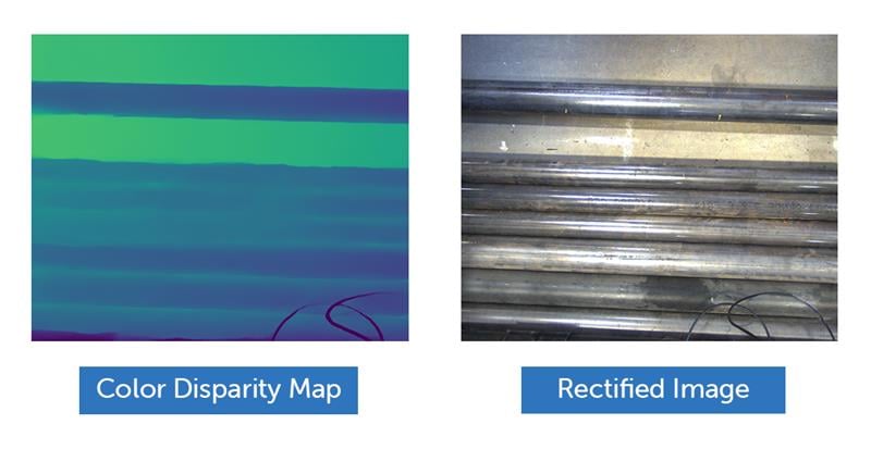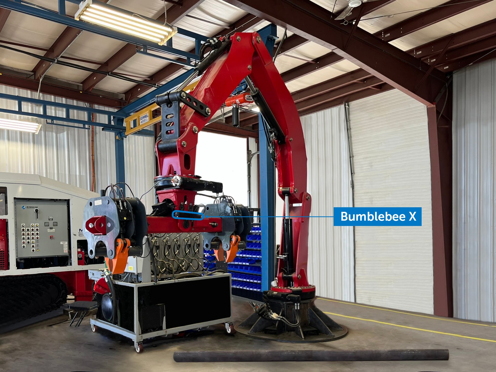 Bumblebee X提供的校正图像和深度图展示了自主操作钻杆的精确检测与深度估计。
