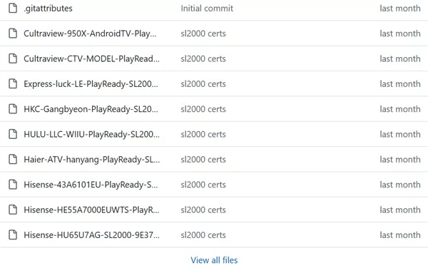 据相关报道,几周前,一个名为“Widevineleak”的账号在GitHub上发布了一系列SL2000和SL3000证书,其中SL2000通常被称为软件DRM,而SL3000提供更高级的基于硬件的防护。