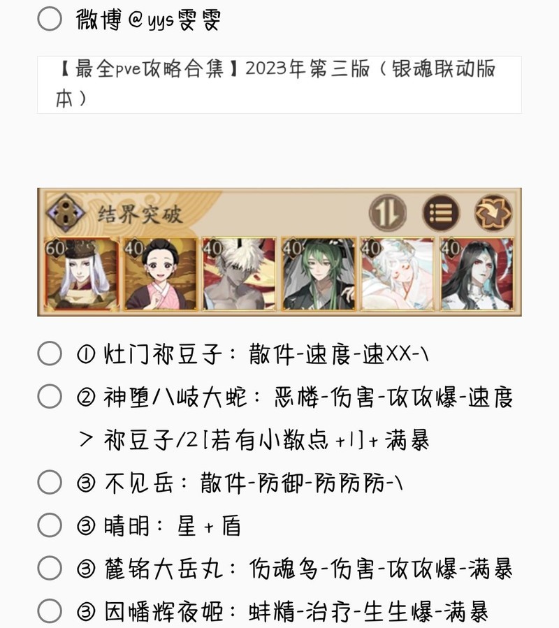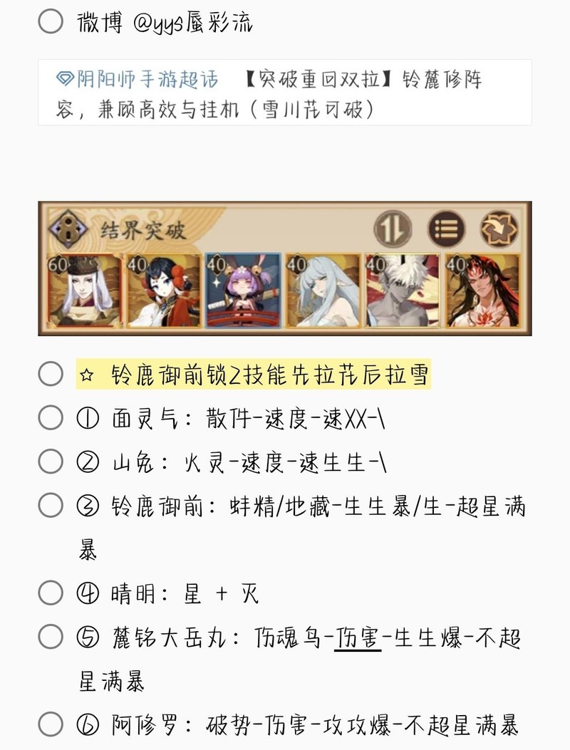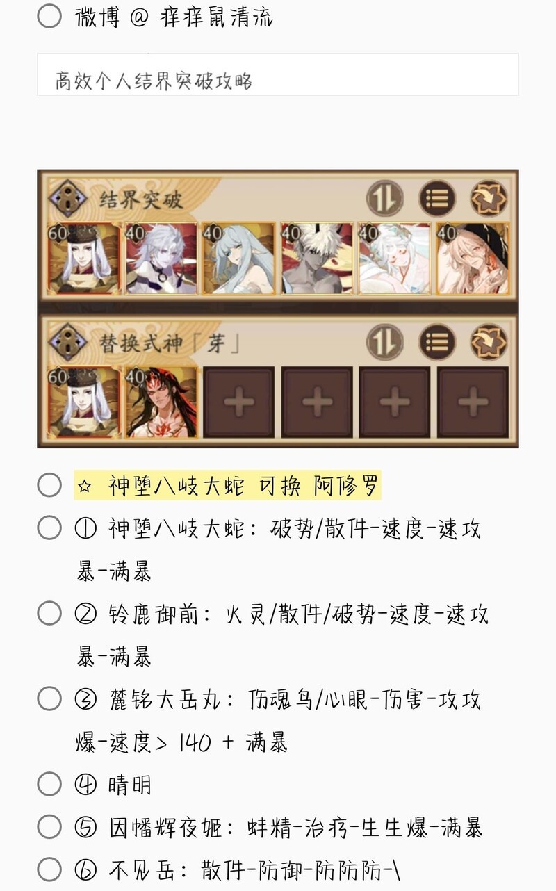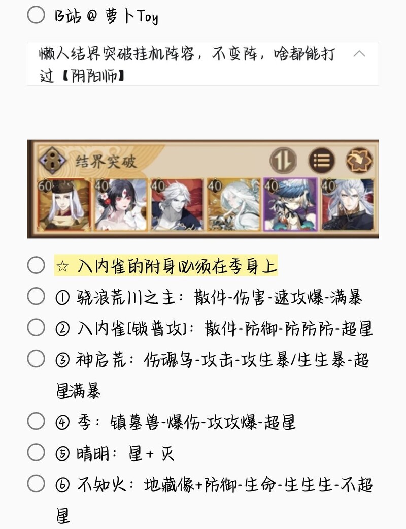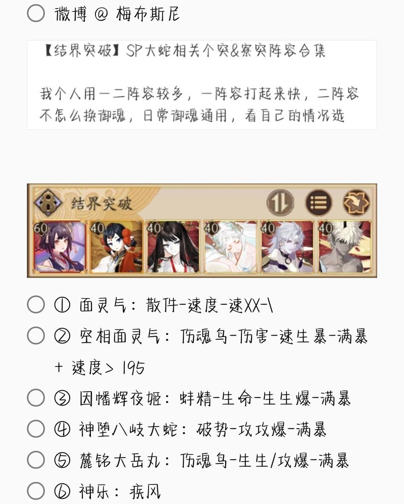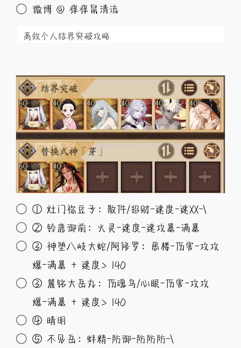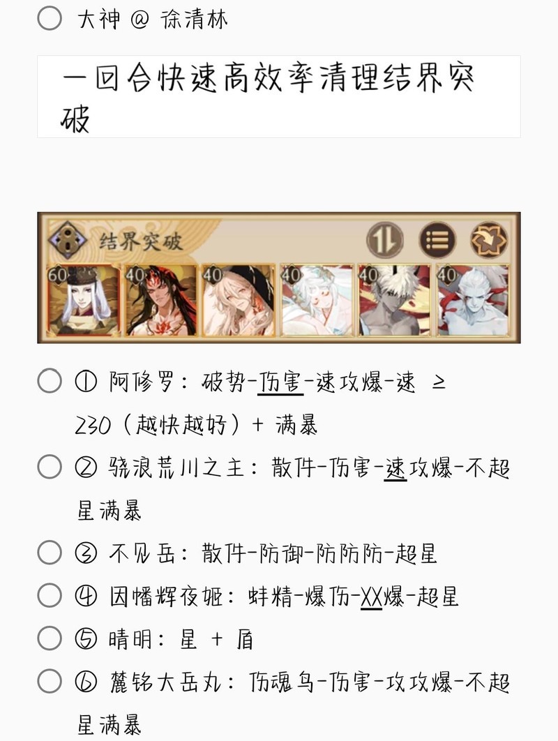 若无特别说明,阵容中的式神需达到六星并技能点满。