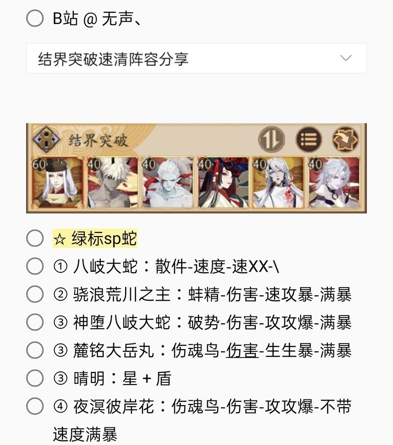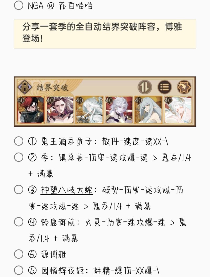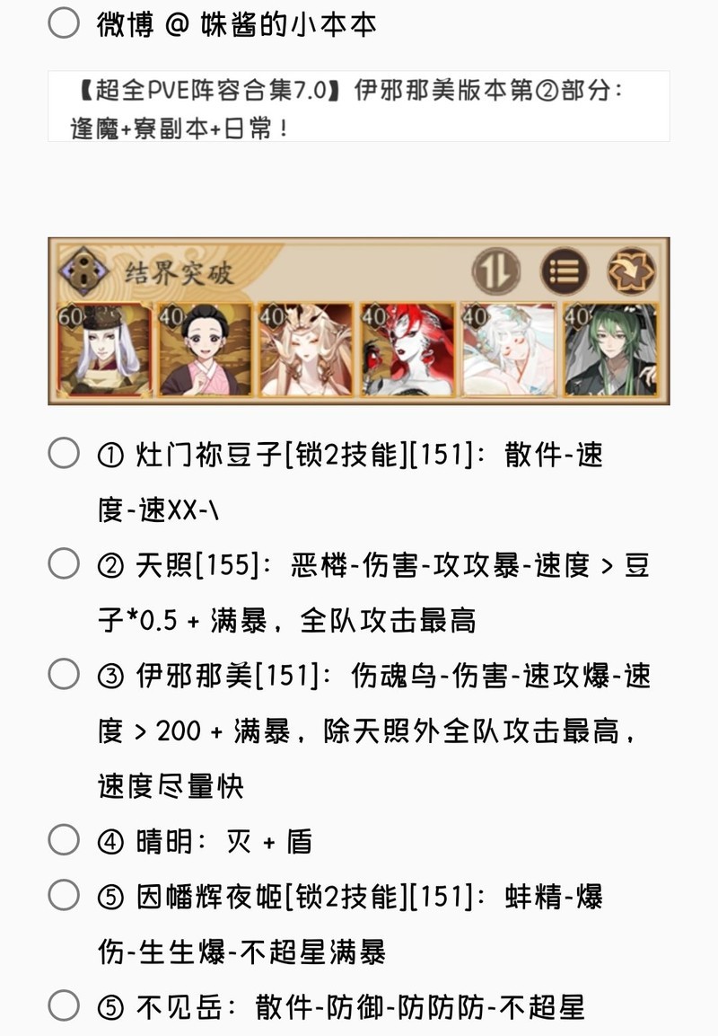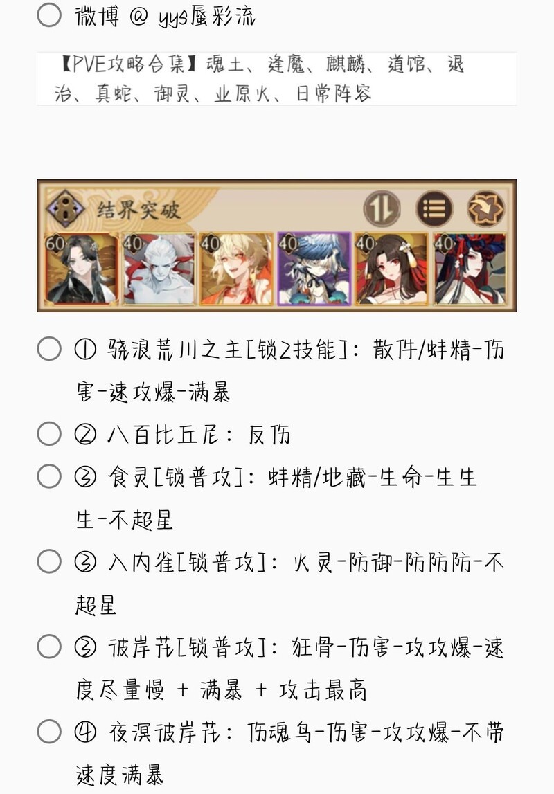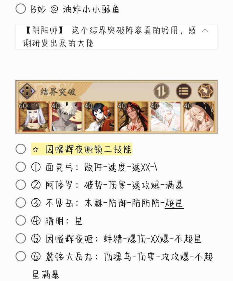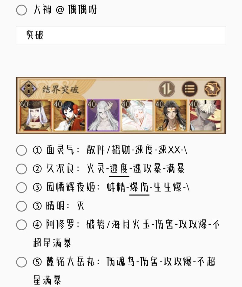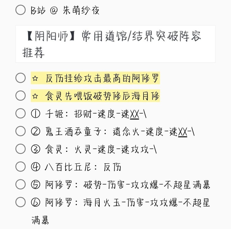 若无特别说明,阵容中的式神需达到六星并技能点满。