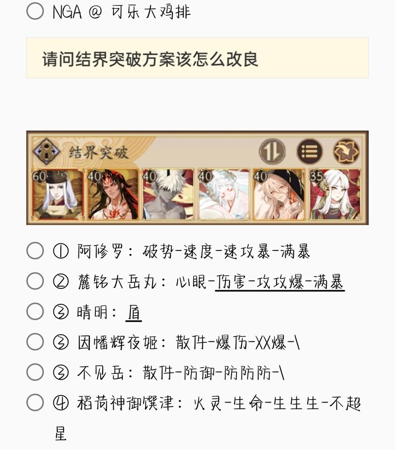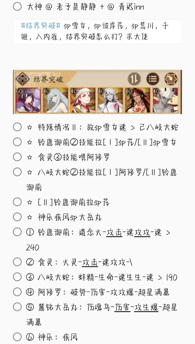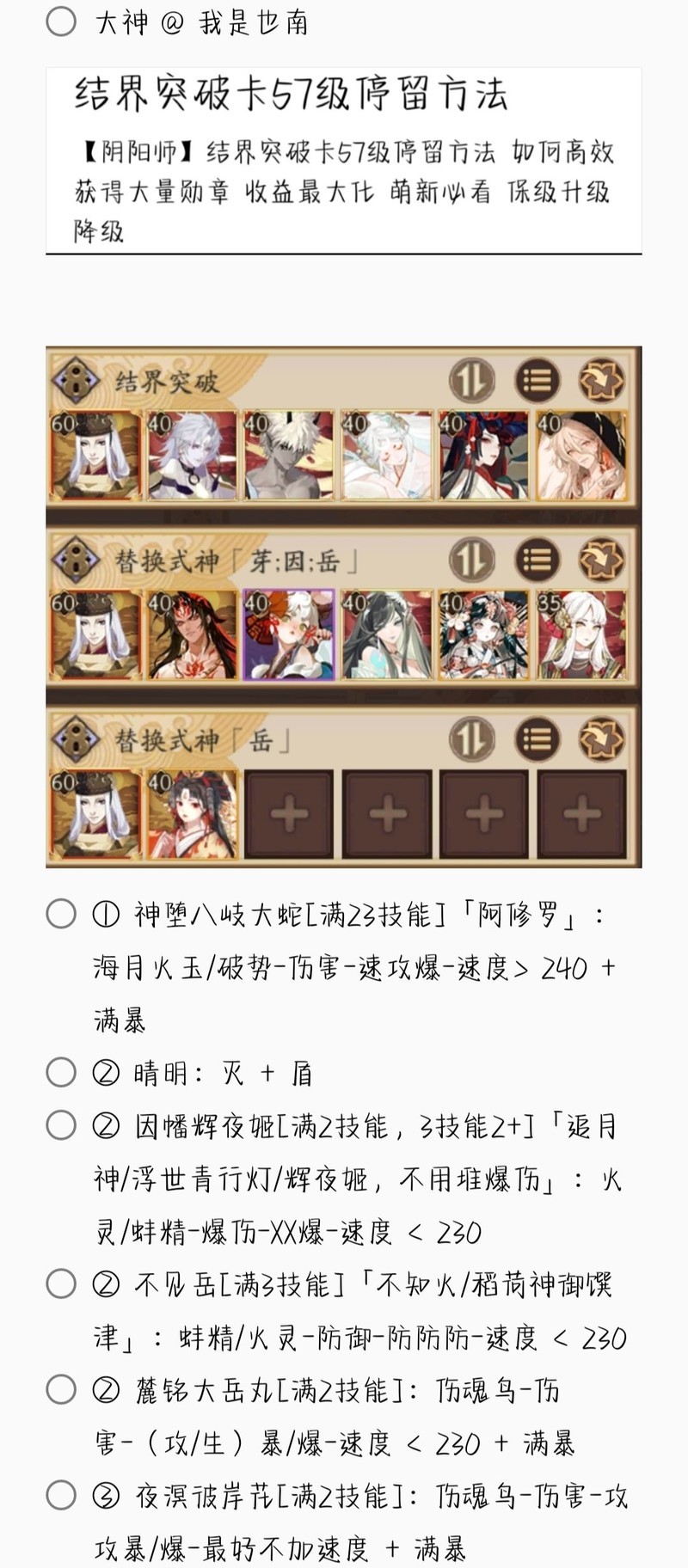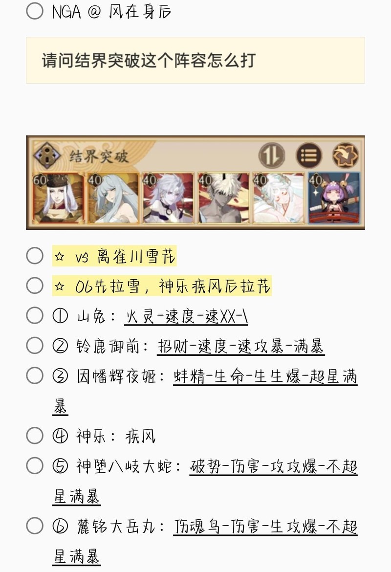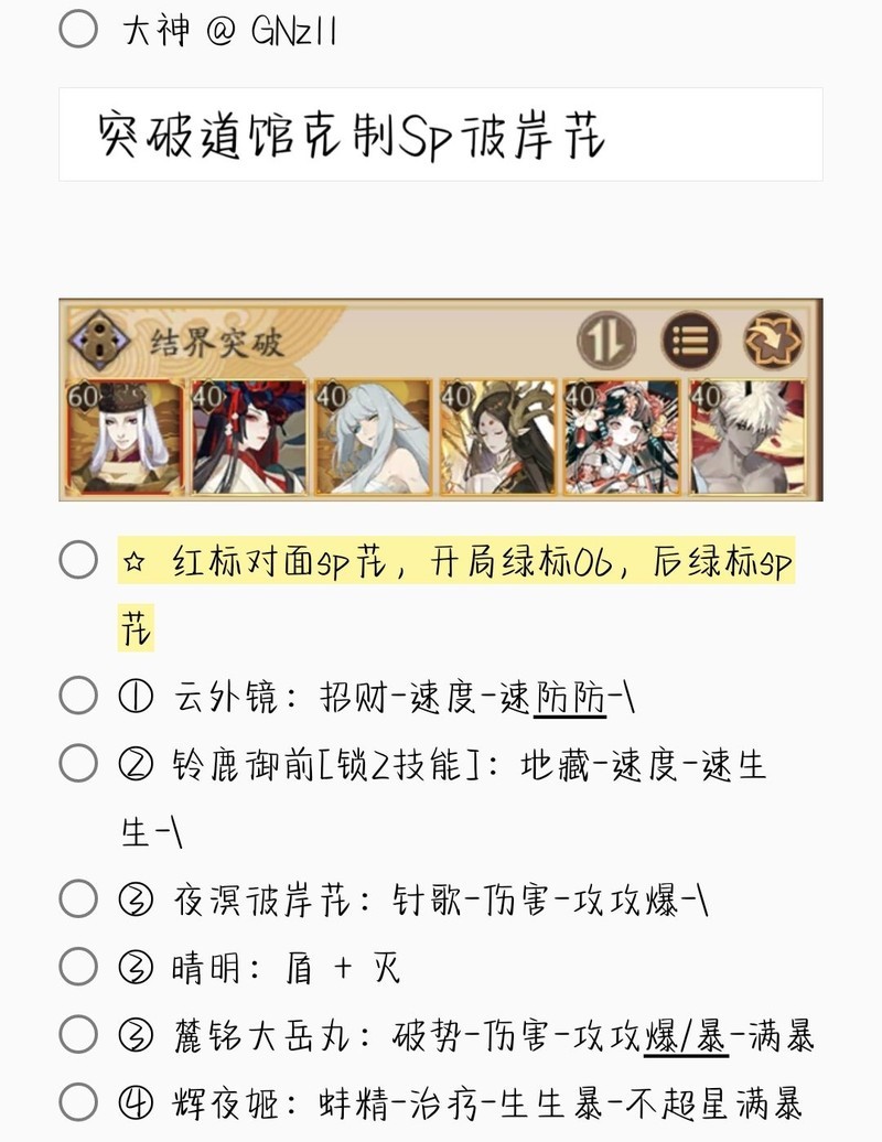 若无特别说明,阵容中的式神需达到六星并技能点满。