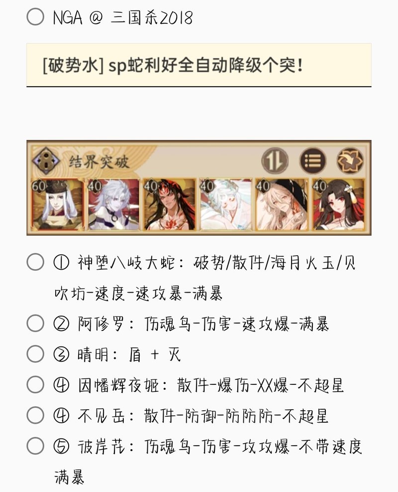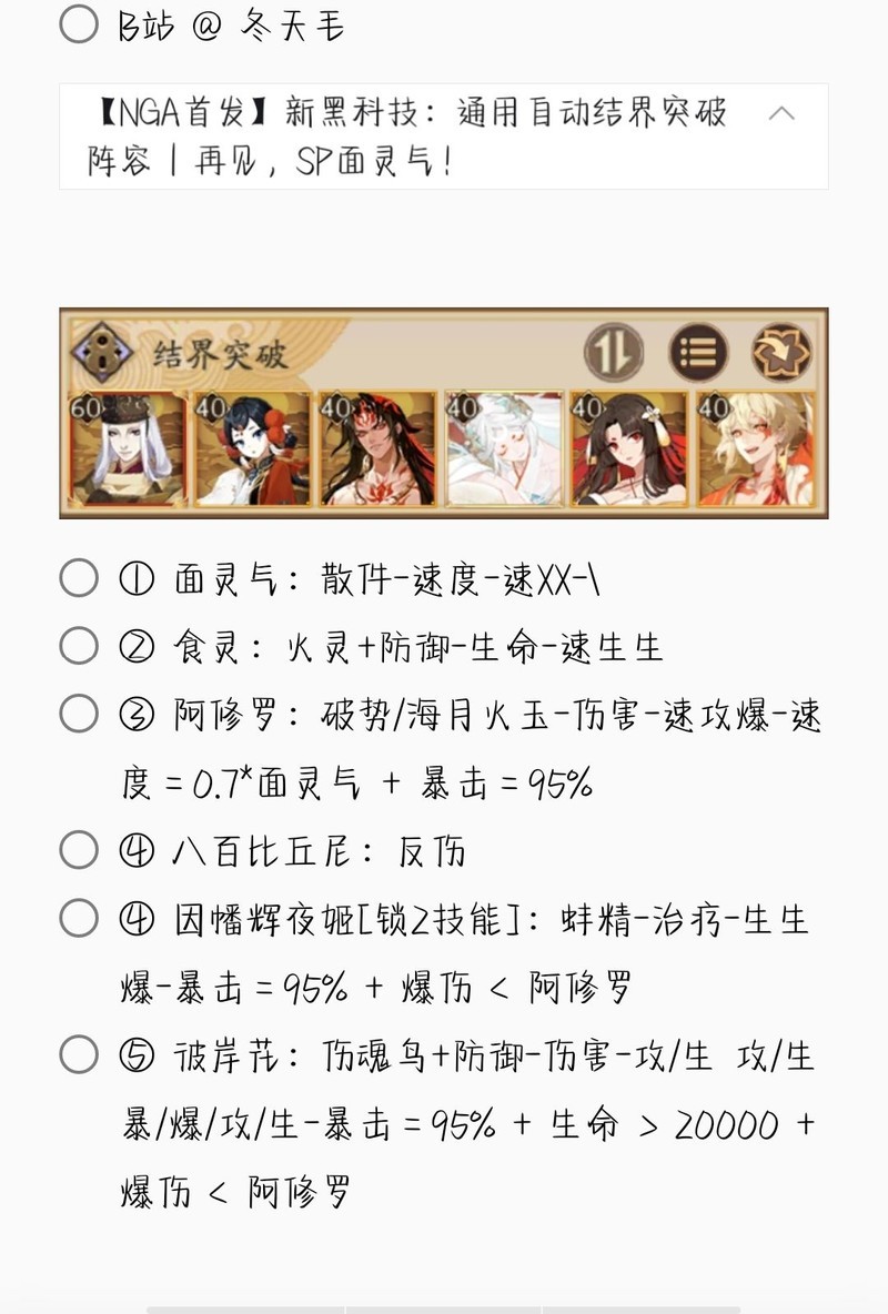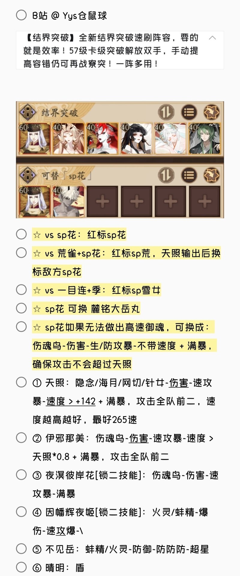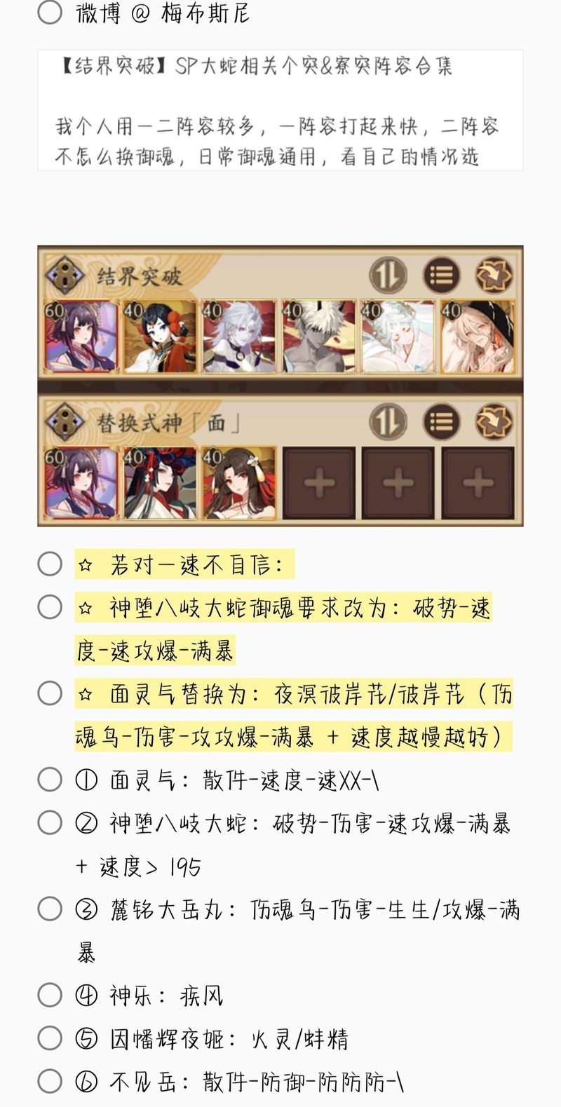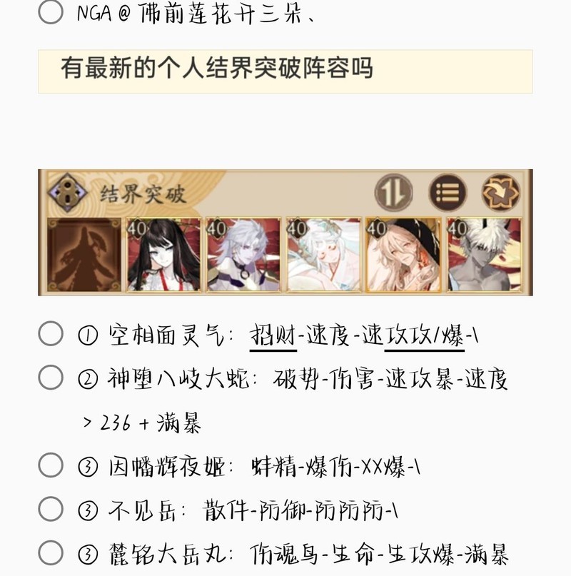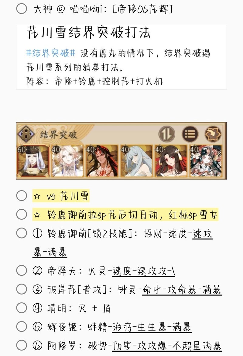 若无特别说明,阵容中的式神需达到六星并技能点满。
