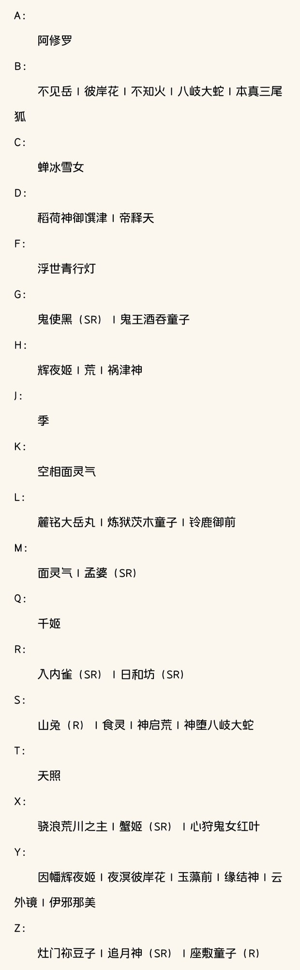 目前合集所用式神如下: