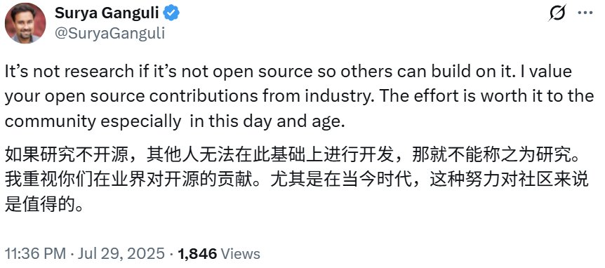 斯坦福大学应用物理学副教授 Surya Ganguli 更是表示「不开源就不能称之为研究」。
