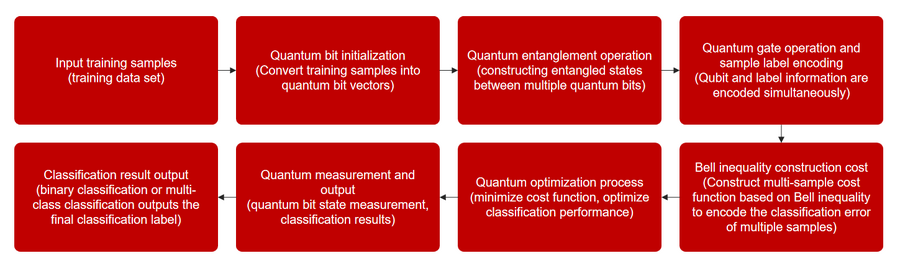 该算法通过量子叠加态将多个训练样本表示为量子比特(qubit)向量,并通过量子门操作将这些样本的标签信息编码到量子态中。由于量子比特之间的纠缠关系,分类器能够在同一时间内同时对多个样本进行操作。这一特性使得传统的逐个样本处理方法被打破,极大提高了训练速度和分类效果。
