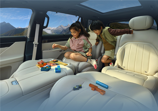 内饰的调整同样如此,提供了暖山玉白内饰,配备15.6英寸悬浮式中控屏和10.25英寸仪表盘,车机系统升级为8295P芯片,后排屏幕从2K升级为2.5K,增加QQ音乐、酷狗音乐等App。