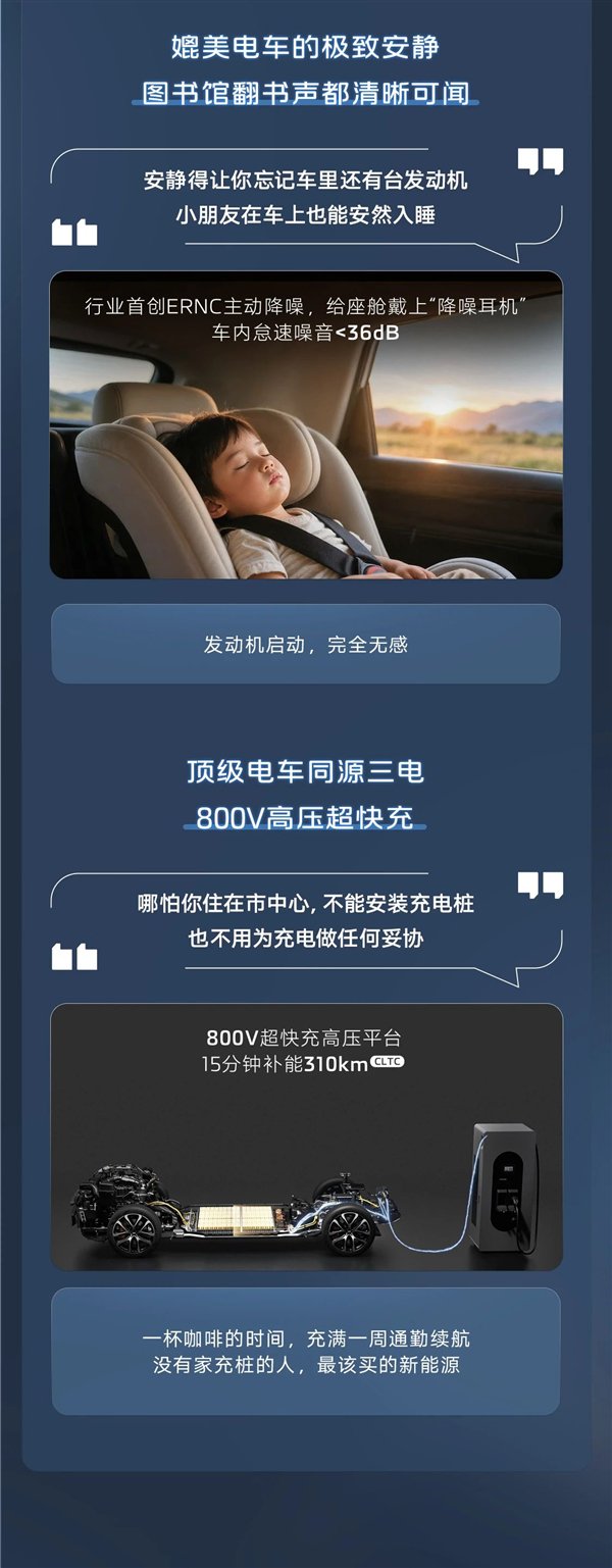 智己首发Zephyr 1.5T增程专属超效黄金发动机,配备VGT可变截面涡轮(官方称系保时捷旗舰跑车同源技术),内置ERNC主动降噪技术,实现全流程噪音振动优化,车内怠速声音仅36dB,比图书馆的翻书声还小。