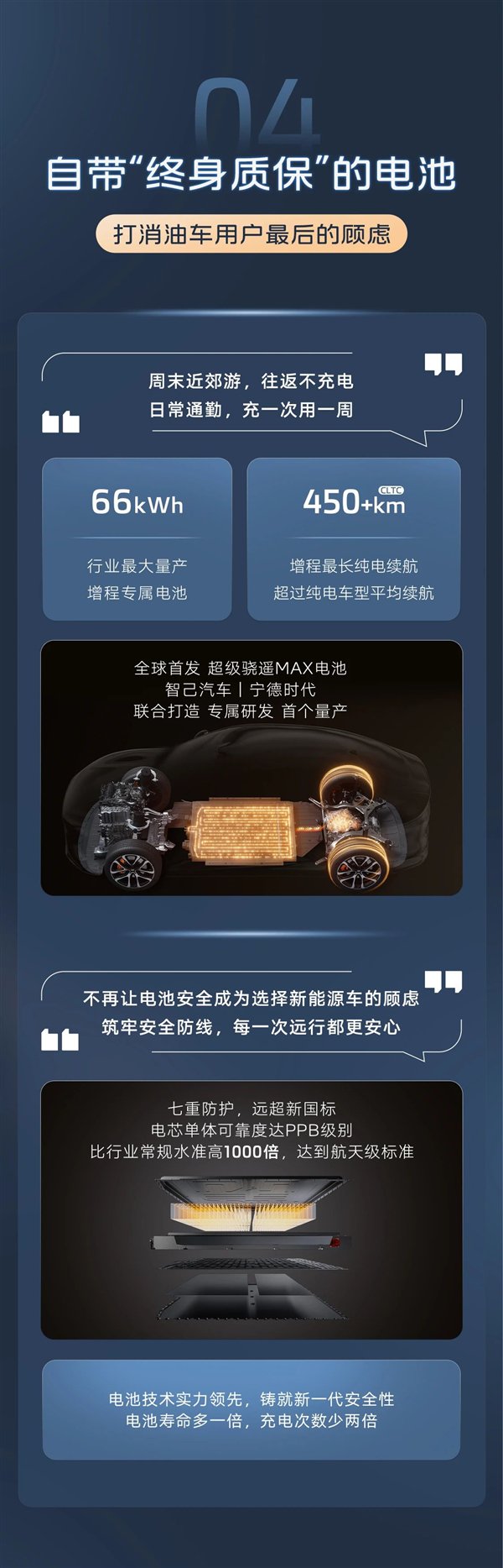 据悉,这块电池由智己汽车与宁德时代联合开发,为行业量产增程专属电池——超级骁遥MAX电池。