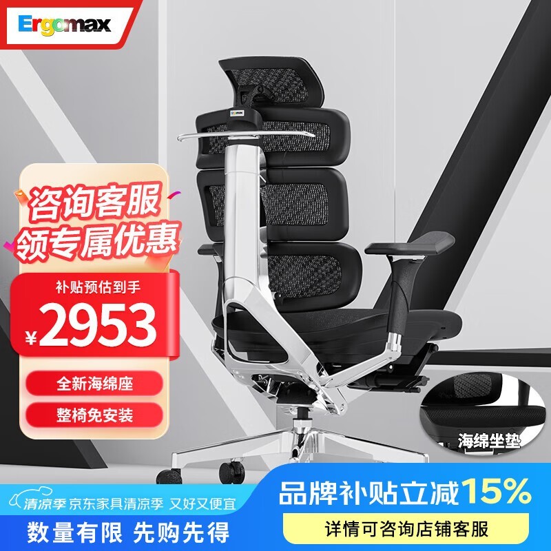 迩高迈思Evolution2PROMAX人体工学椅魅力黑+畅躺架
