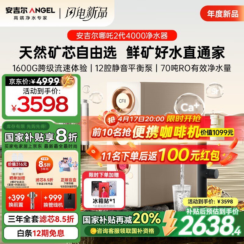 ANGEL哪吒2代4000净水器京东优惠价2638元