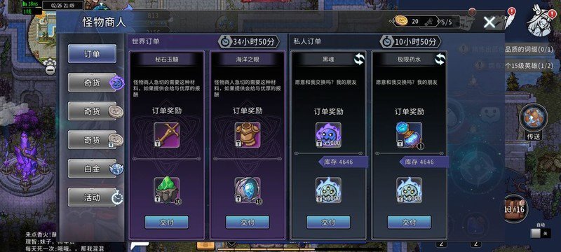 私人订单每48小时刷新一次,魂奇货和世界订单则分别在72小时内更新。