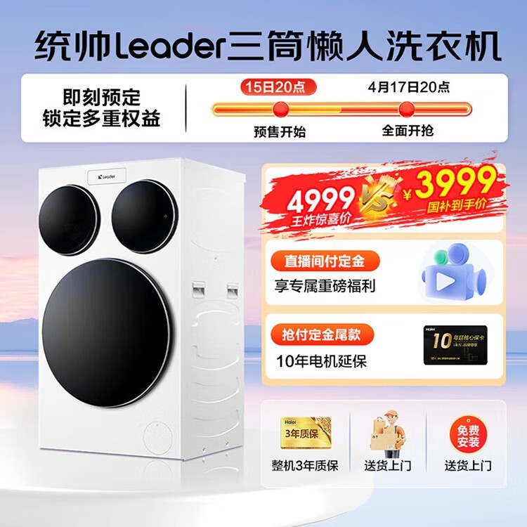 Leader XQGL125 - MBLDE697WU1 12kg滚筒洗衣机,京东到手价3999元