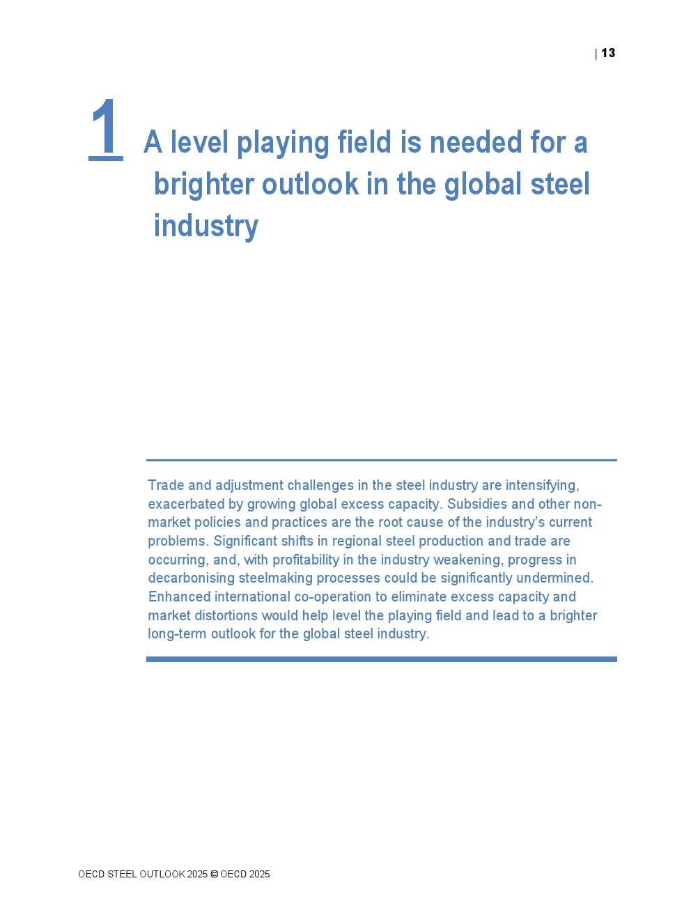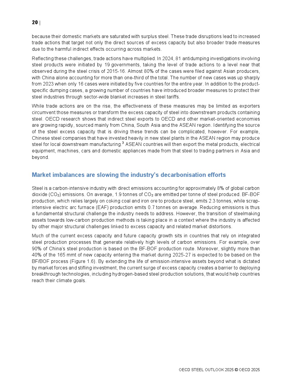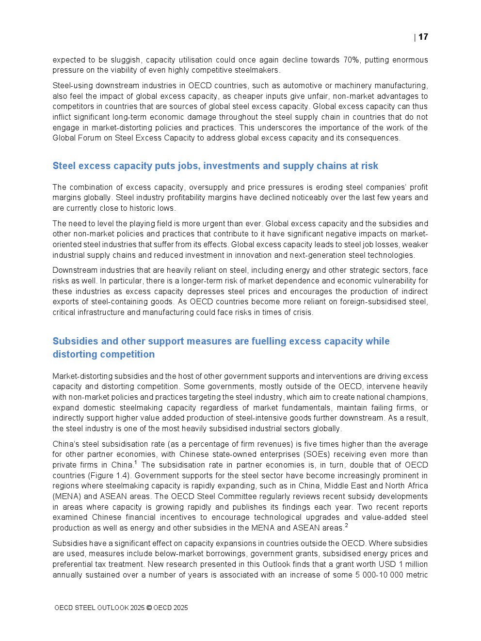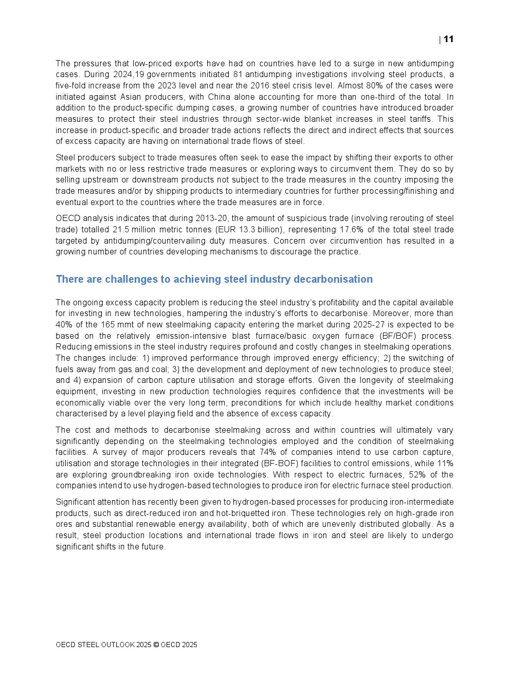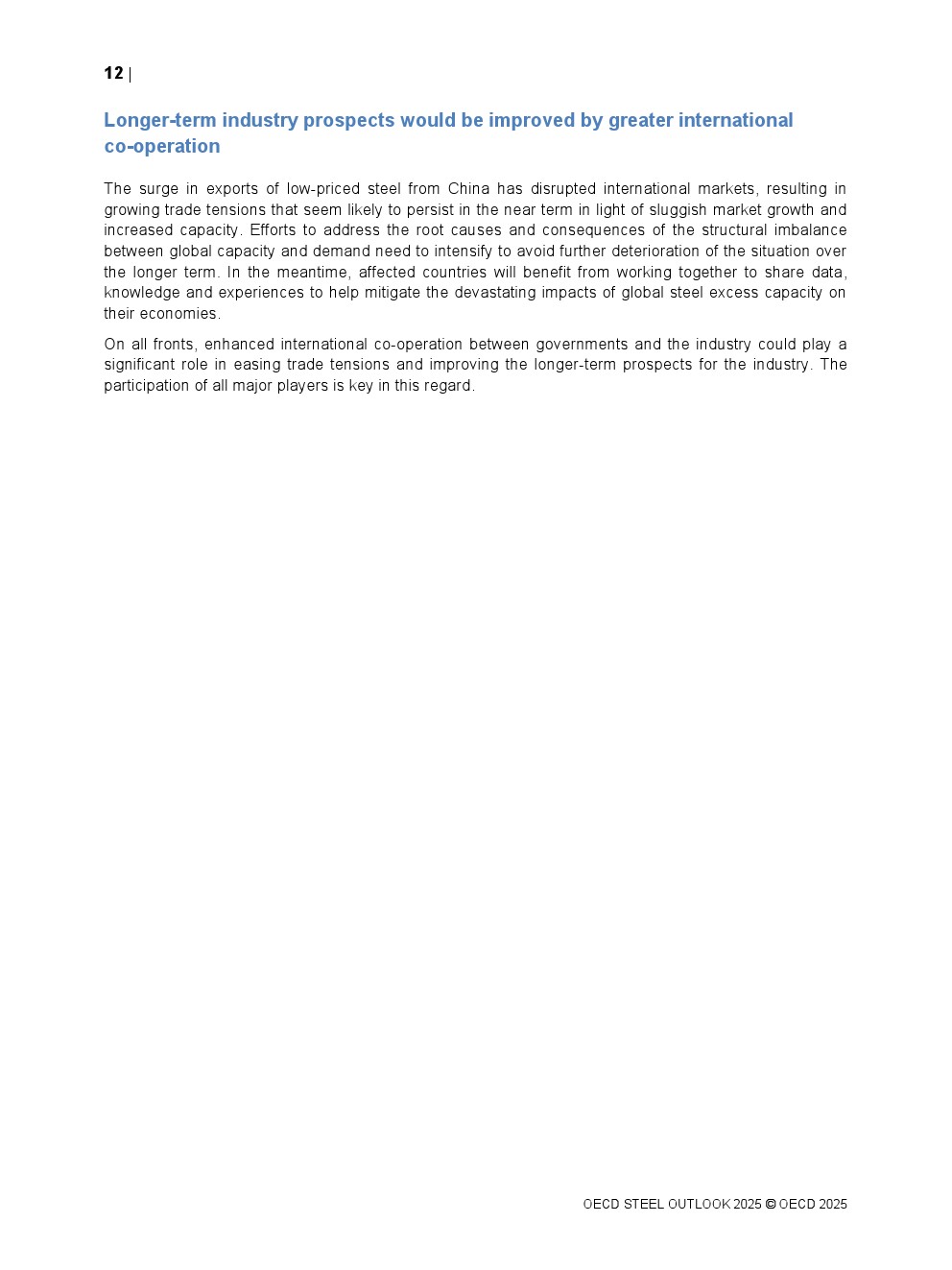 为避免长期形势恶化,需加强解决全球产能与需求结构性失衡根源及后果的努力。受影响国家可通过共享数据、知识与经验合作减轻全球钢铁过剩对经济的破坏性影响。