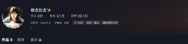 截至目前,该女生的短视频账号已经积累了3.1万粉丝,获赞超23万。