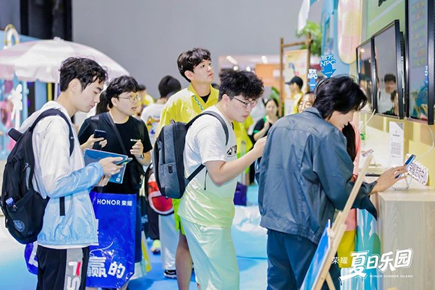 此外,荣耀展台以「荣耀夏日乐园」为主题,还在现场设置了“荣耀游戏中心”“酷夏极能体验站”“夏日自拍馆”等区域,互动玩法目不暇接。在游戏中心体验区,荣耀为玩家带来点开即玩的荣耀小游戏新鲜体验,以及专属的游戏福利。在酷夏极能体验站,玩家可直观感受荣耀MagicV5的鲁班铰链与青海湖电池的出众产品力。在夏日自拍馆,玩家还能与高颜值Coser打卡拍照,体验荣耀400系列2亿超清人像写真的非凡实力。
