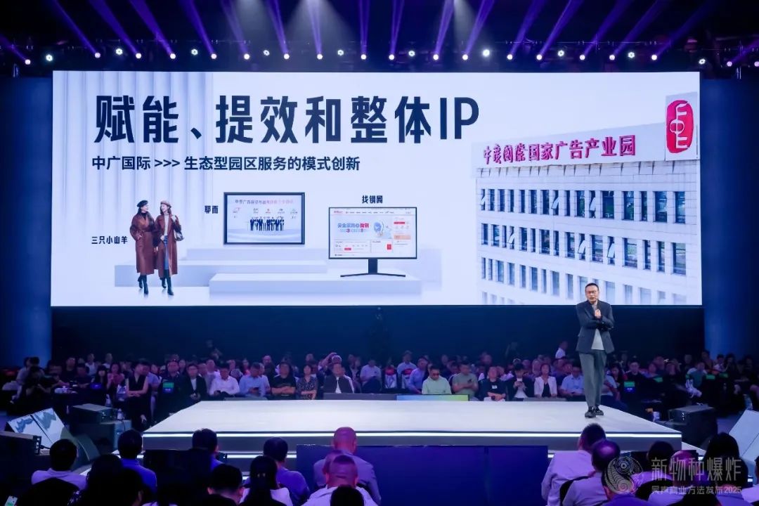 中广国际是一个非常典型的生态园区案例。它不再依赖传统的租赁模式、税收模式或招商方法,而是选择了整体赋能、效率提升以及打造统一IP的战略路径。例如,中广国际的高管团队亲自为入驻品牌「三只小山羊」代言,甚至在园区自身的宣传投放中,也大量使用入驻品牌的素材。