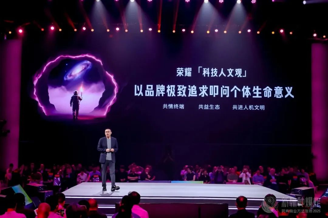 以品牌极致追求叩问个体生命意义,我们看到荣耀「科技人文观」是投射在洞穴上的光,也是遥望更远未来的野望。我用「共情终端、共益生态、共进人机文明」来理解荣耀的战略路线图。
