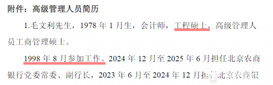 那么,毛文利的全日制第一学历是什么?北京银行的相关公告中没有透露。