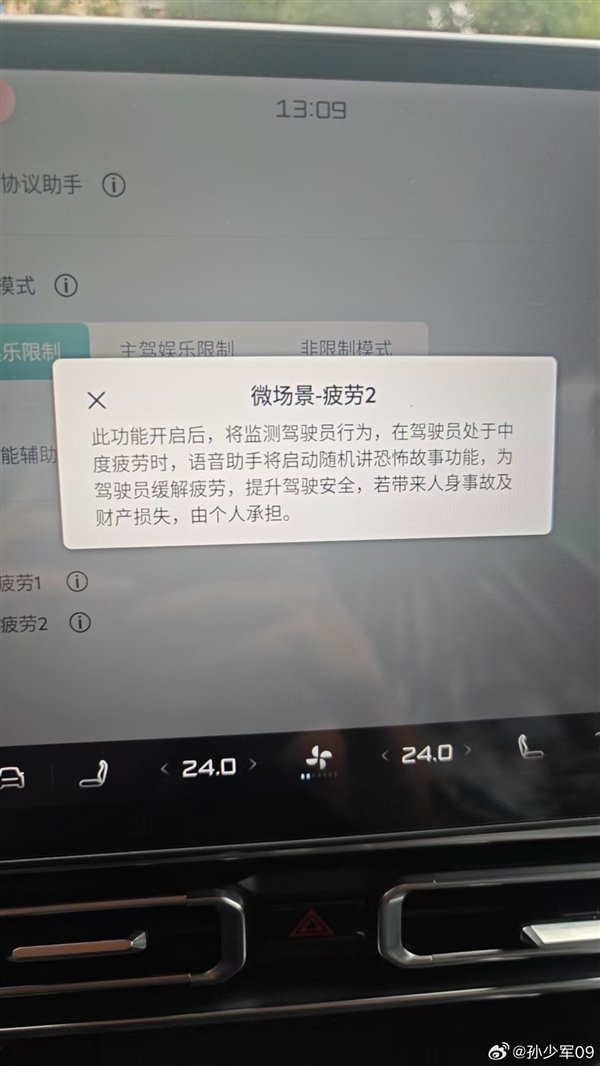 近日,有博主分享了一新能源汽车提供的一小功能,确实另辟蹊径,从照片看,这项功能应该是应对司机疲劳而生,界面显示: