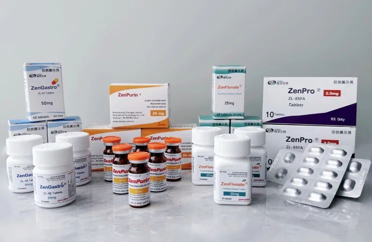 赜灵生物临床在研品种ZL-82、PM、FM、ZL-85FA(从左至右)产品展示