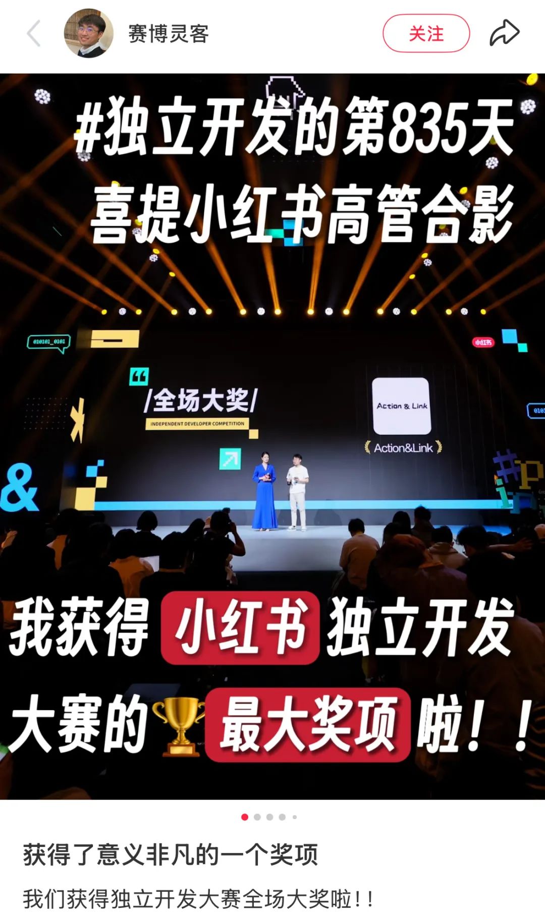 2025 年 4 月 16 日,是戎思佳独立开发的第 835 天,也是他从 1000 多个项目中脱颖而出,拿下小红书独立开发者大赛唯一大奖(冠军)的一天。
