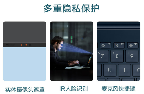 配合实体摄像头遮罩、IR人脸识别和麦克风一键静音等设计,兼顾会议效率与隐私安全,让远程办公更从容。