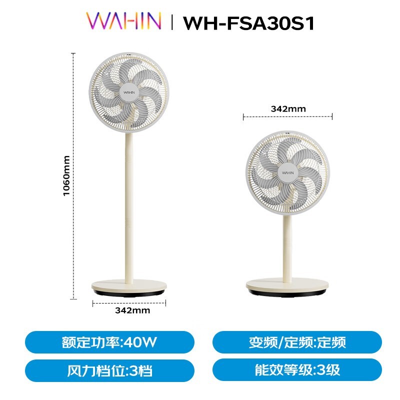 华凌美的7叶轻音风扇大风量节能柔风WH-FSA30S1立减15%