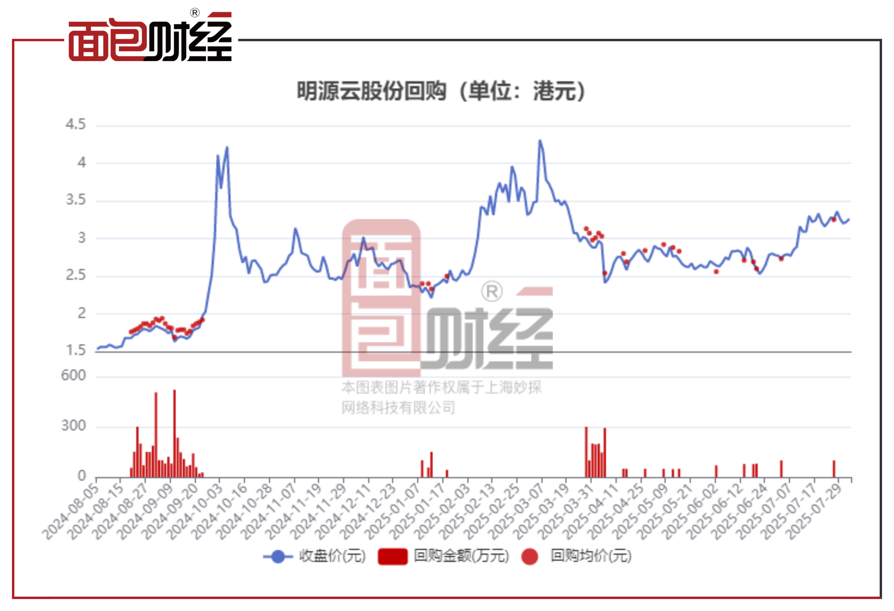 Wind数据显示,截至7月31日,明源云年内累计回购918.2万股,合计耗资约2568.22万港元。2024年,明源云累计回购3446.6万股,合计耗资约6654万港元。