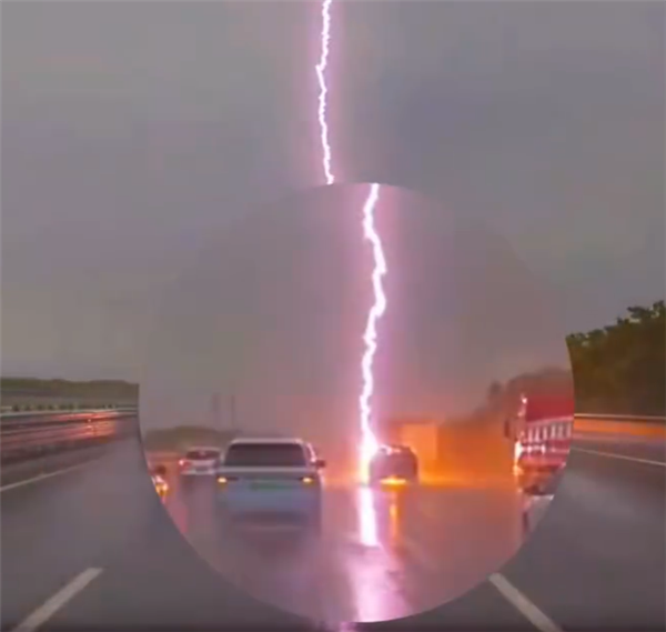 快科技8月5日消息,据媒体报道,8月2日,浙江一车辆雨天在高速路上行驶时被闪电击中。