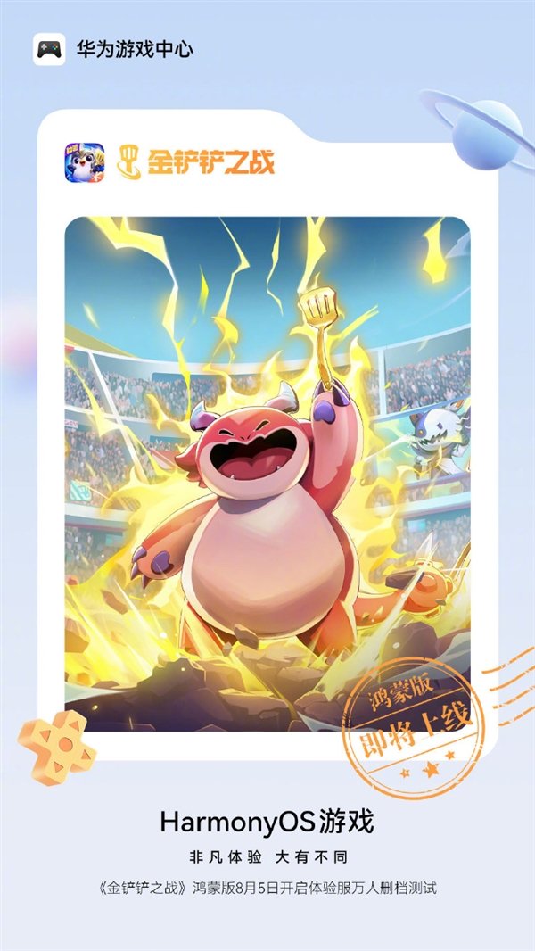 除了《原神》之外,腾讯《金铲铲之战》鸿蒙版今天也已经开启尝鲜,进行万人删档测试。