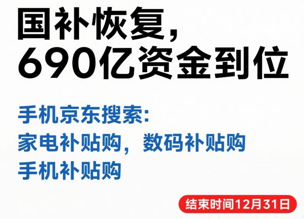国补第三批 690 亿元资金已就位,。政策执行期延续至 2025 年 12 月 31 日。更值得期待的是,第四批 690 亿元资金预计 10 月接力,确保 “全年不断档”,让大家能持续享受政策红利。补贴覆盖家电家居、手机数码及汽车报废更新,力度明确,流程优化,此前因资金消耗快、风控升级导致的 “暂停” 已解决。