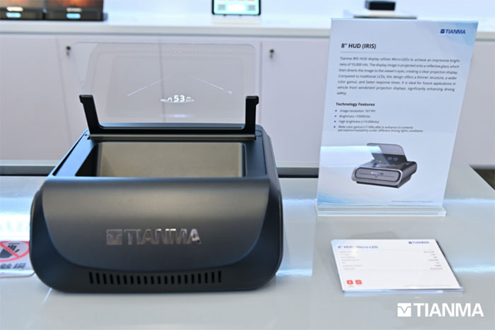 天马推出的8" IRIS HUD,是业界首款具有最高PPI(167PPI)的Micro-LED IRIS HUD,可实现>10000nits的超高亮度和>116%的广色域表现,能够将导航、车速等关键驾驶信息直接投射到挡风玻璃上,呈现出更为细腻、清晰的视觉效果。即使在阳光直射下,也依旧清晰可读。相较于传统的LCD,该显示屏提供了更薄的结构、 更广的色域和更快的响应时间,未来可应用于汽车前挡风玻璃投影显示领域,有效提高驾驶的安全性。