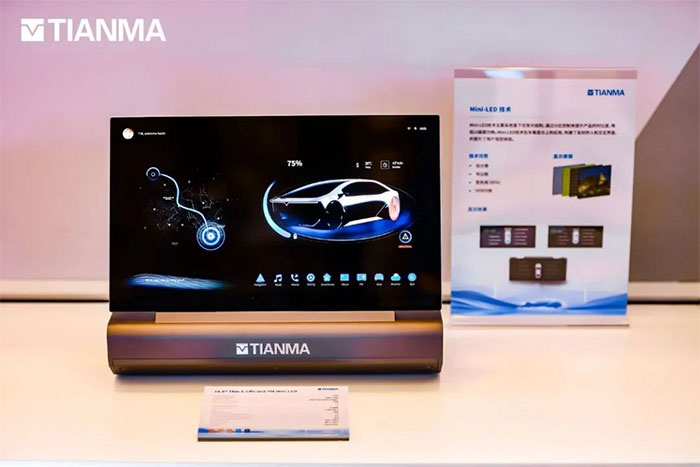 15.6"薄型高效Mini-LED显示屏采用了天马独创直下式Mini-LED背光结构光学设计,使Mini-LED模组具有超薄厚度、超窄边框、单分区光效提升、功耗低等优势。该显示屏集成了车规级局域调光技术,实现600,000:1的超高图像对比度与100%的超高色域,在极致还原色彩的同时进一步降低功耗,能够覆盖更多中高端车载显示需求。