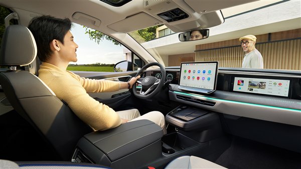 内饰也启用了家族最新设计语言,搭载15英寸中控屏以及11.6英寸副驾屏,内置8155芯片,语音助手与科大讯飞合作,方言识别、连续对话、可控功能均实现升级。