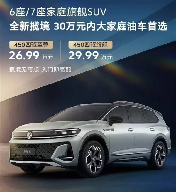 快科技8月5日消息,新款一汽-大众揽境正式上市,提供2款配置车型,售价26.99-29.99万元。