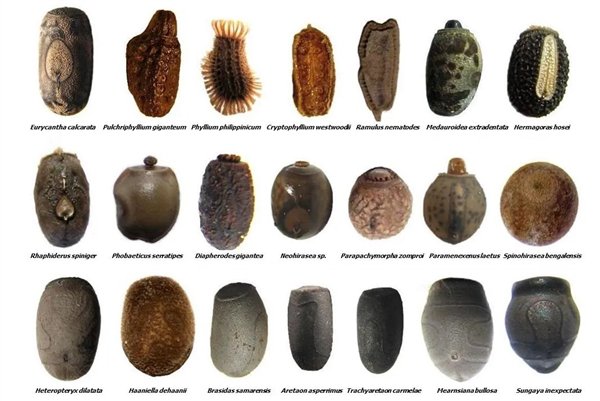 不同的物种,卵的表面、纹理和凹坑各不相同,形状也各有不同,因此,卵是区分不同竹节虫物种的标准之一。