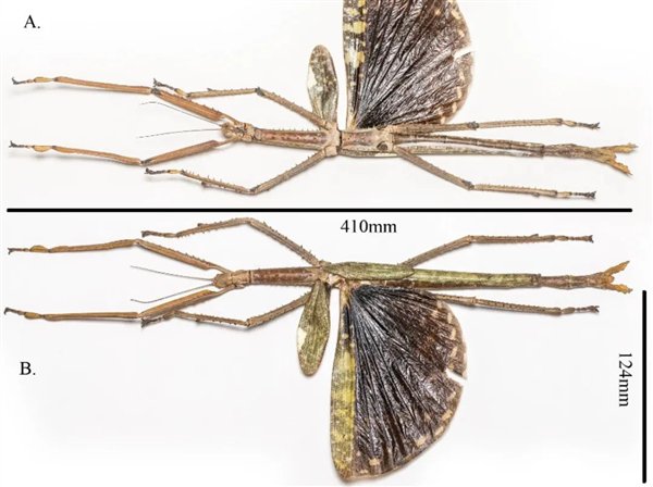 最终的研究结果也和他们猜测的一样,证明他们抓到的这只巨型竹节虫确实是新物种,属于竹节虫中有翅膀的一类。