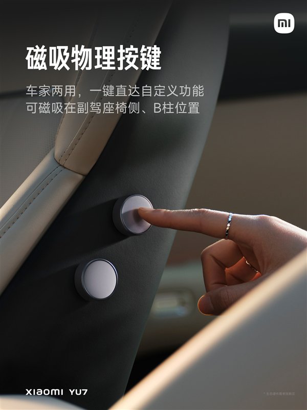 快科技8月5日消息,小米YU7全车9处隐藏式磁吸点位,最重要的作用一直就是配合磁吸物理按键使用。