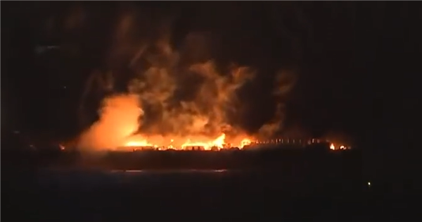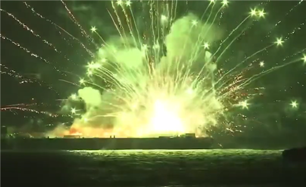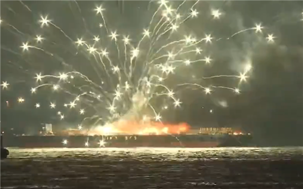 有意思的是,驳船爆炸失火后,引燃了不少未燃放的烟花,由于没有人员管控,这些烟花无序乱放起来,甚至在火灾发生数小时后还有零星的烟火升空。