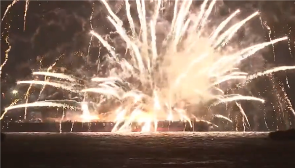 火势还蔓延至另一艘船,所幸船上无人,主办方解释称是烟花发射装置失控,警方等正在调查详细原因。