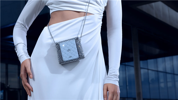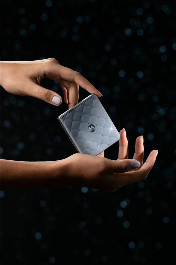据悉,moto razr 60手工镶嵌了35颗施华洛世奇水晶,铰链处还装有一颗精密切割的大水晶,拥有26个璀璨刻面,机身右侧配备了水晶风格的音量键,摩托罗拉还附赠一个透明斜挎保护包,方便用户展示这款折叠屏手机的独特设计。