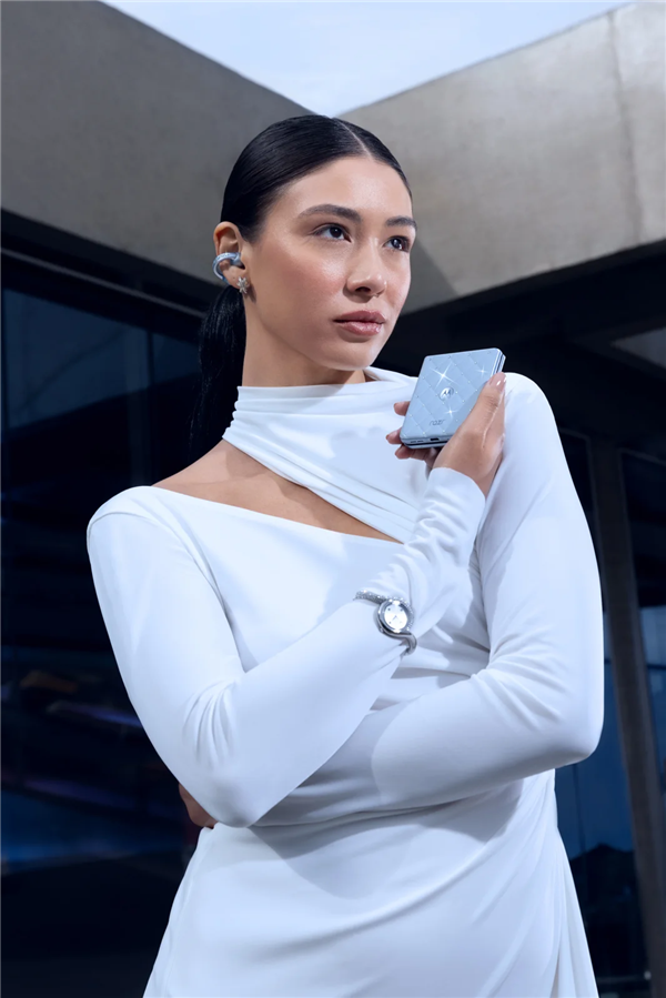 快科技8月6日消息,摩托罗拉与珠宝品牌施华洛世奇合作推出全球首款珠宝小折叠moto razr 60限定版,该系列包含moto razr 60和moto buds loop无线耳机,这两款新品均镶嵌有施华洛世奇水晶,并采用限量的彩通色。