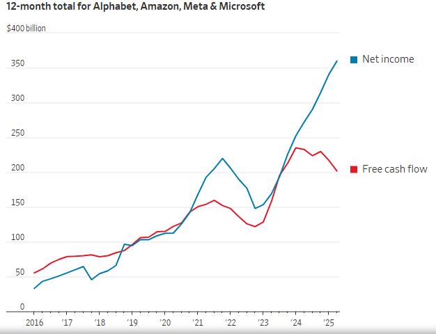 美科技巨头AI投资热现金流降,隐忧浮现。