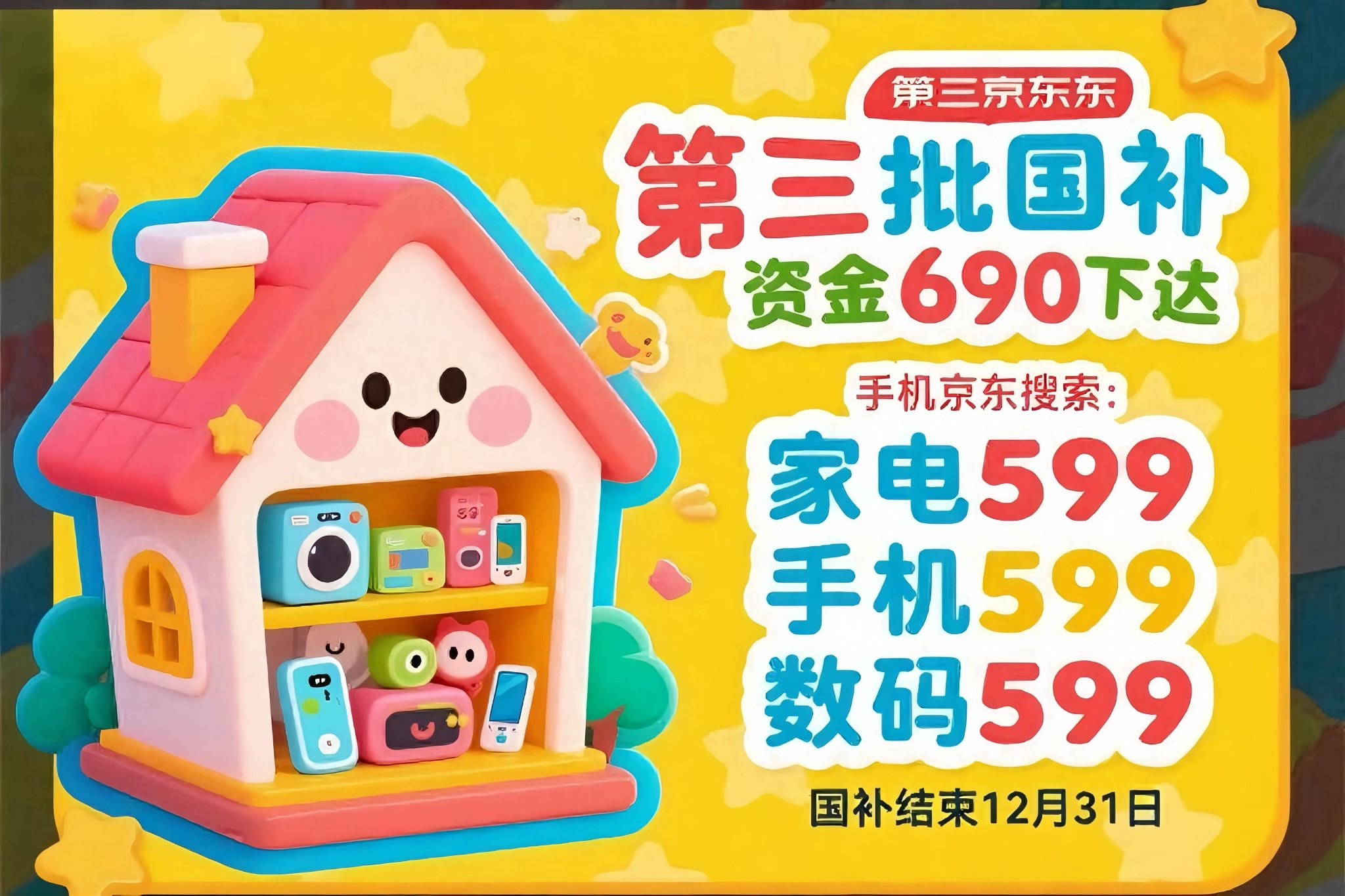 家电家居类:京东 APP 搜索「家电599」,领最高 2000 元补贴(一级能效立减 2000 元);