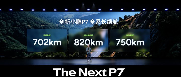 新 P7 全系搭载了 800V 架构的 5C 超充 AI 电池,10 分钟能够补能 525 公里,续航有 702、750 和 820 公里三个版本。