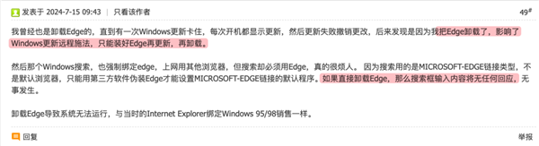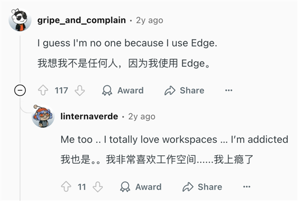他们日常生活中已然离不开 Edge 的帮助,他们在卸掉 Chrome、Firefox 后,也从不会受到任何干扰。