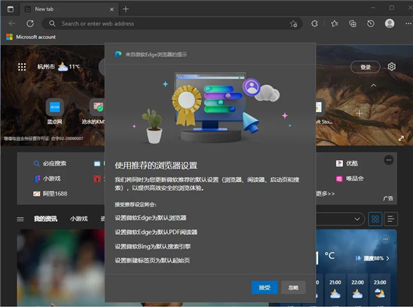默认浏览器成了 Edge,默认 PDF 阅读器也是 Edge,默认搜索引擎是必应,标签页又回到了它的起始页。