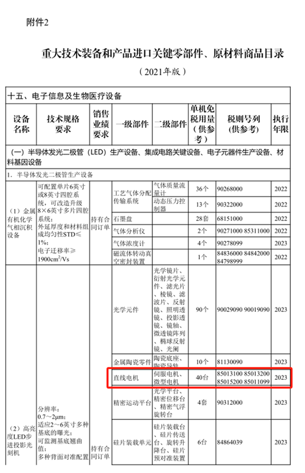 据了解,2021年12月,国家五部门联合发布的《重大技术装备和产品进口关键零部件、原材料商品目录(2021年版)》明确将光刻机用直线电机列为关键“卡脖子”项目,直线电机的制造和生产技术对我国打破国外光刻机技术垄断具有重要意义。