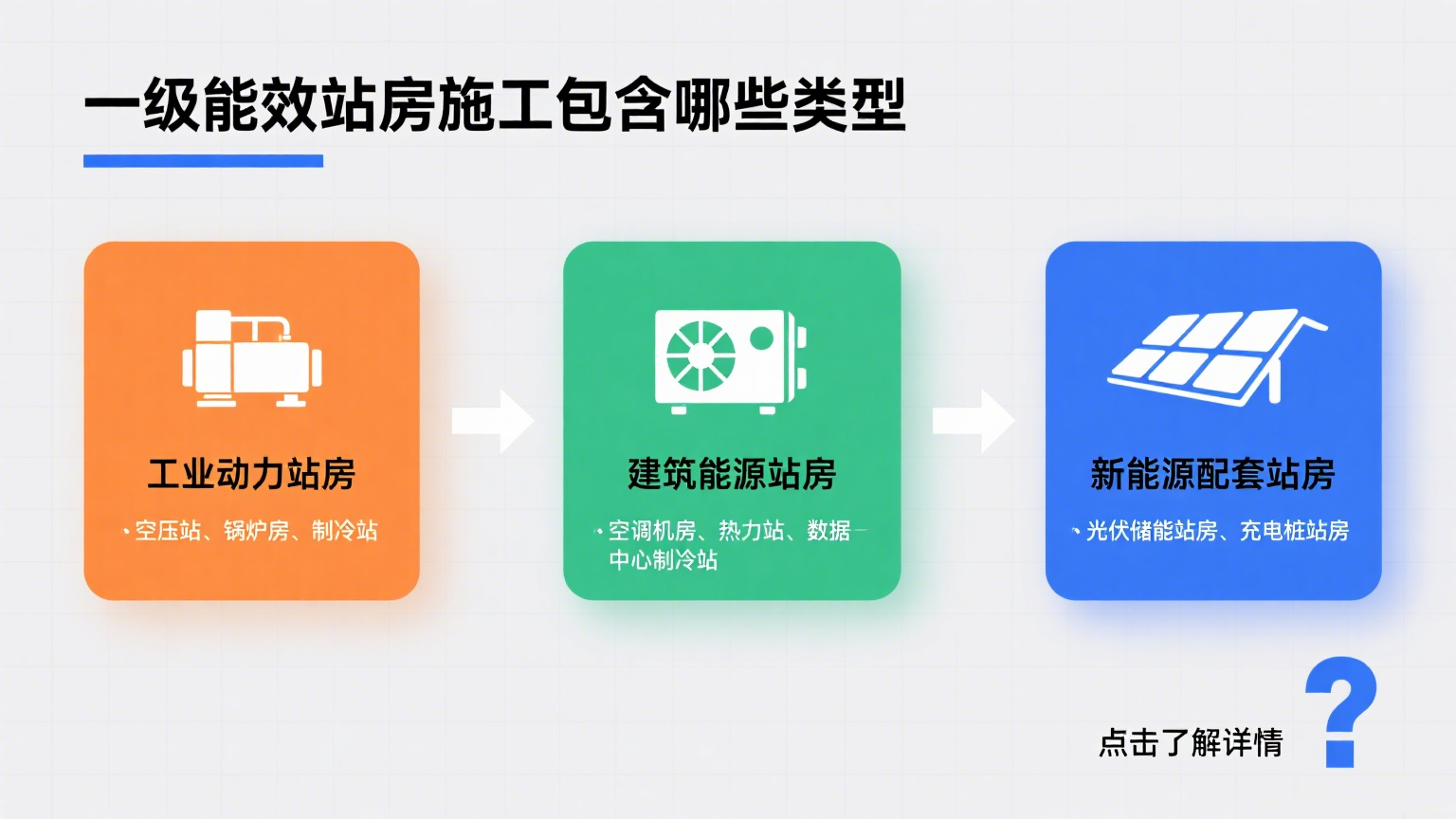 一级能效站房施工根据应用场景与核心功能,主要分为以下几类: