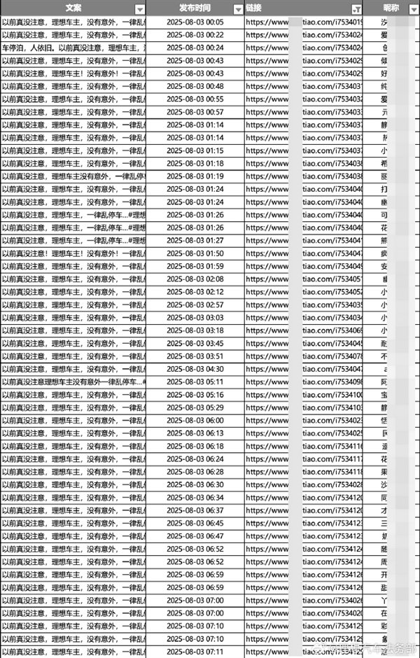 经我司核查,此类负面信息24小时不间断在多平台密集发布,具有多频次、内容高度同质化等特征,涉嫌有组织的违法犯罪。以8月3日为例,自0时至早7时,仅1个平台就集中出现45篇以《以前真没注意,理想车主,没有意外,一律乱停车…#理想车主》为主题的相同视频。即便是凌晨时段,大量密集地攻击仍未收手,直到现在,还未停止。这一行为背后的黑力量,在挑战社会的良知和法律的底线。